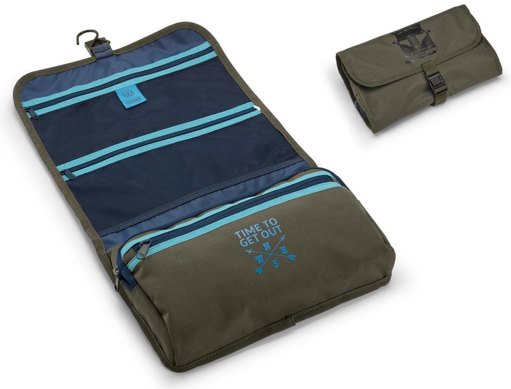 145,00 złOliwkowa kosmetyczka T1 wykonana z materiału pochodzącego z recyklingu w kolorze ciemnego khaki,z kolekcjiHeritage. Praktyczna, łatwado zwinięcia i zawieszenia. Wnętrze w dwóch kontrastujących odcieniach niebieskiego. Kosmetyczka jest zamykana paskiem z plastikową klamrą zatrzaskową i ma metalowy klips do zawieszenia.Wewnątrz znajdują siędwie zapinane na zamek przegrody wykonane z siateczki (co ułatwia schnięcie wilgotnych rzeczy).Dodatkowo kosmetyczka ma komorę z dołączoną kieszenią, również zamykaną na suwak.Na zewnątrz znajduje się czarny nadruk „T1 Camper Van”, a wewnątrz znak Heritage w kolorze jasnoniebieskim.